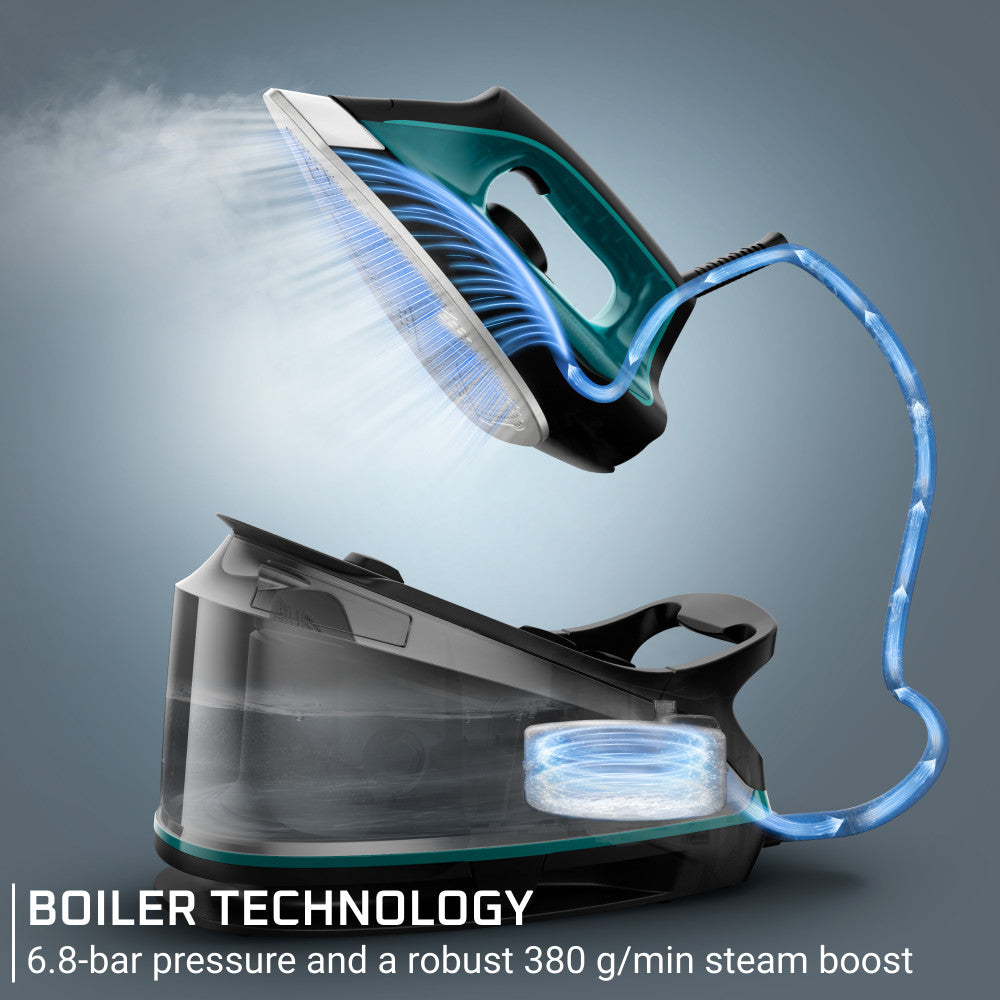 Powerful Steam, Speedy Results: High-Pressure Boiler System boasting 6.8-bar pressure to consistently deliver up to 380 g/min steam output for fast de-wrinkling results.