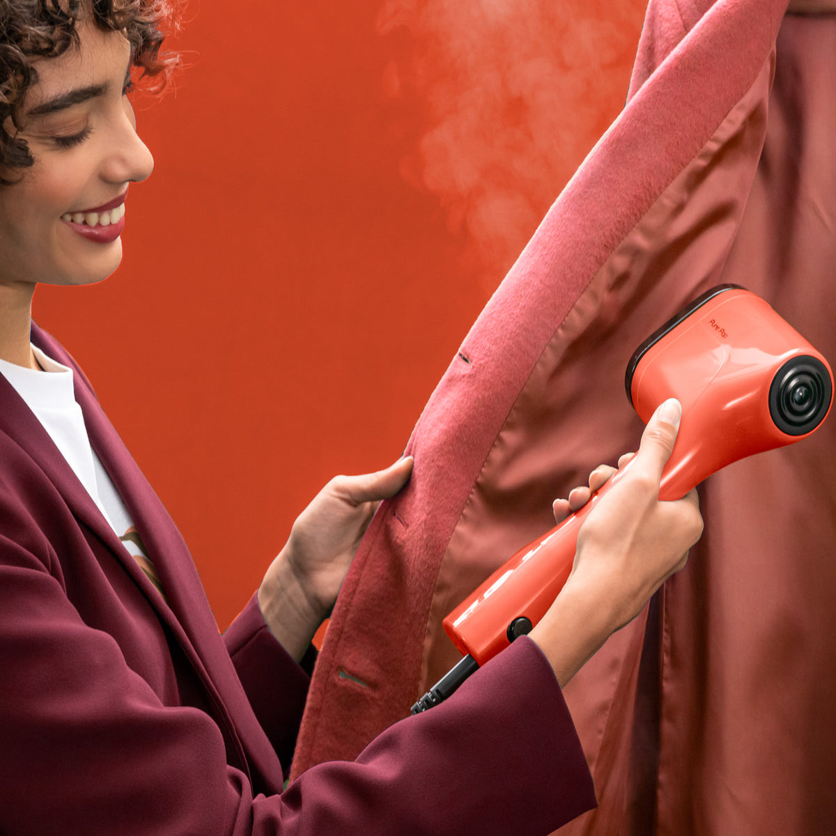 Reveal your style with the Rowenta Pure POP Handheld Garment Steamer. The garment care solution that takes fabric care to a new level. This handheld steamer is intuitive, fast and efficient, refreshing and steaming your fabrics in one simple, smooth movement. The unique reversible pad system switches effortlessly between a velvet side for steaming without any risk of damage—even to the most delicate textiles—and a lint remover side that refreshes clothes and keeps you looking your best. Rowenta Pure POP is ultra-compact, slim and lightweight to go anywhere you need it—for effortless storage and great for travel. The lightning-quick 15-second heat-up time, ideal for frequent use and last-minute touch-ups.